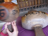 拝殿の大きな注連縄には、びっちり御賽銭が